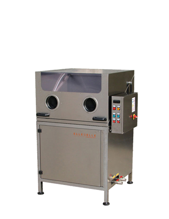 Die ELJ 650 ist eine kombinierte Edelstahl Reinigungsanlage, mit welcher ein automatisches und manuelles Reinigen von metallischen und nichtmetallischen Bauteilen möglich ist. Während des automatischen Reinigungsvorgangs rotiert der Reinigungskorb in der Anlage. Das Reinigungsgut wird dabei von drei Seiten unter hohem Druck mit heißem Reinigungsmedium gereinigt. In der oberen Kammer können mit Hilfe einer leistungsfähigen Spritzpistole und schneidfesten Gummihandschuhen manuelle Reinigungs- und Entfettungsarbeiten vorgenommen werden.
